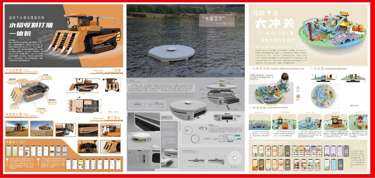 第十届全国高校数字艺术设计大赛、第六届国际环保公益大赛、2022美国IDEA奖、英国生态设计奖、新加坡金沙艺术设计大赛、G Cross全球大学生创新设计大赛、BICC中英国际创意大赛、第四届CADA日本概念艺术设计奖、第四届香港大学生当代设计奖、第二届ICAD国际当代青年美术设计大赛、第七届“包豪斯奖”国际设计大赛…… 2022年春季学期至今,我校万象城awcsport官网工业设计专业师生凭借《Ecological restoration design of abandoned mining area》、《水稻收割打捆一体机》、《“水面卫士”除藻机器人》、《识火仔—基于视觉识别的山火机器人》、《“果园管家”智能果树修剪返田机器人设计》、《Zazen》等一系列生态创意设计作品荣获了十二项国际、国内设计大赛的一等奖3项(金奖)、二等奖12项(银奖)、三等奖(铜奖)23项,省部级奖项88项。