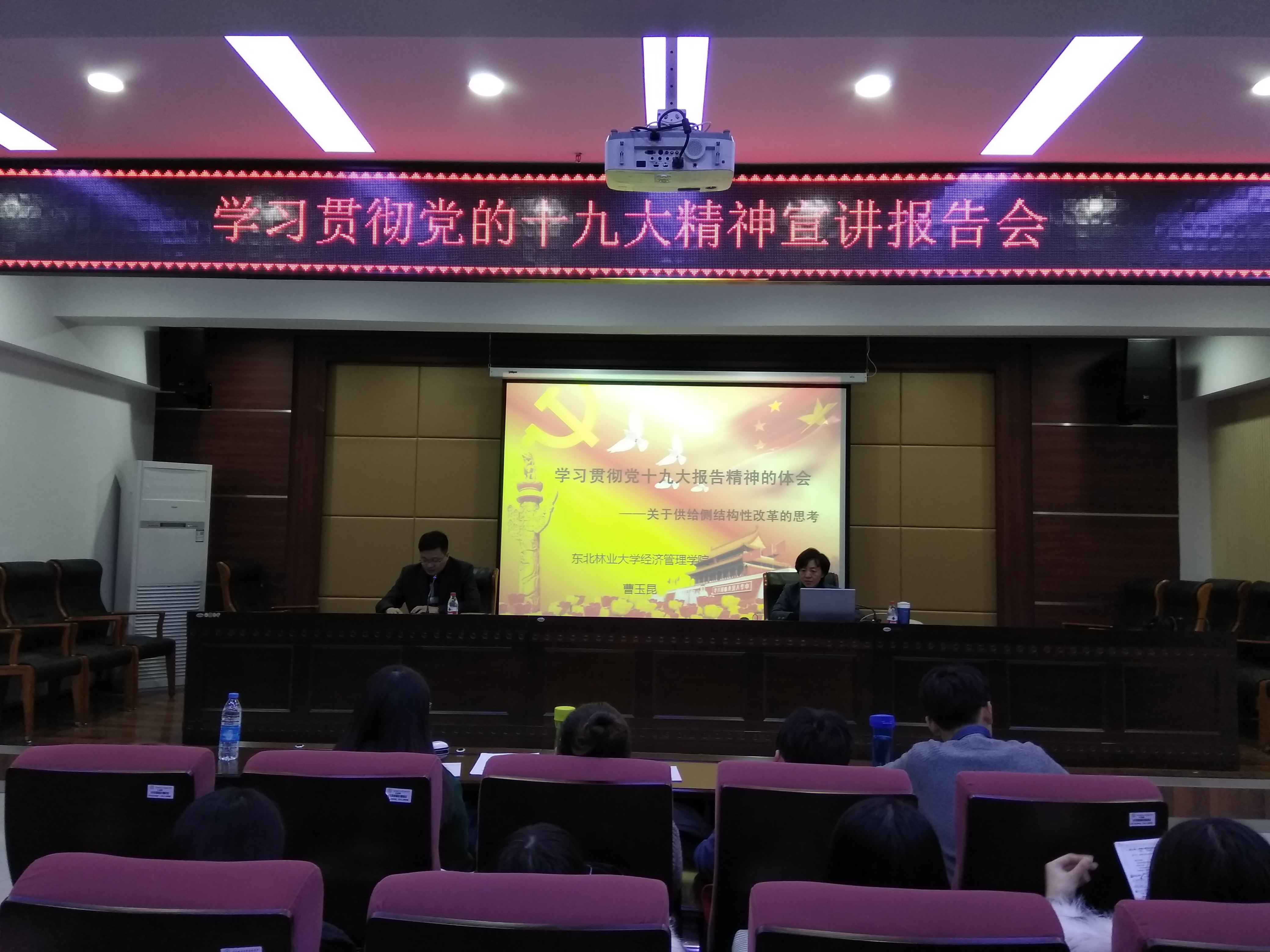 为深入贯彻落实十九大精神,引导广大学生党员充分认识习近平新时代中国特色社会主义思想,做到知行合一。根据学校要求,学院学生党支部邀请学校理论政策宣讲团成员曹玉昆教授为学生党员作了主题为“关于供给侧机构性改革的思考”的宣讲报告会。