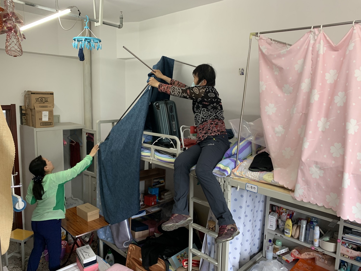 堆积行李,也在堆积情感;整理物品,更是整理自我。小到一枚牙刷、一个钥匙链,大到一套床被、一箱书籍。尽管学生的需求千差万别,但老师的回答永远都是——没问题。“我寝室有很多好吃的,还没来得及打开,送给您吧。谢谢老师、辛苦老师了,麻烦老师了!”同学们可爱的表达和朴素的情感,让老师们心里十分熨帖。