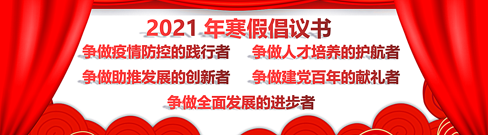 五要争做全面发展的进步者。德智体美劳,你我皆需要。要关注时政新闻,刷屏学习强国,多读文学类书籍,陶冶情操,净化心灵,弘扬中华美育精神。要在做好个人防护的前提下积极参与本地乡村振兴、垃圾分类、志愿服务、社会调查等实践活动,积极投身家庭建设,培养吃苦耐劳精神,努力形成“教师提升育人本领,学生增强就业砝码,共同敲开幸福之门”的良好氛围。