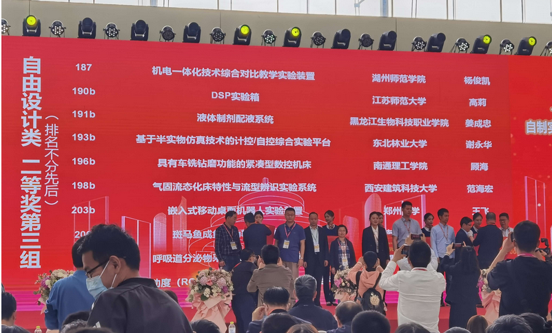 5月21-23日,中国高等教育学会主办的第56届中国高等教育博览会在青岛举行。高博会特设“第六届全国高等学校教师自制实验教学仪器设备创新大赛”决赛展区。经过激烈的初赛网评、现场终评及决赛答辩等环节,我校万象城awcsport官网的“基于半实物仿真技术的计控/自控综合实验平台”,荣获自由设计类二等奖。