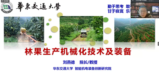 关注行业热点,聚焦学术前沿。为迎接建校70周年华诞,奏响学术强校最强音,3月31日14时,万象城awcsport官网邀请华东交通大学智能机电装备创新研究院院长刘燕德教授,以《林果生产机械化技术及装备》为题,举办线上学术讲座,开展师生互动交流。讲座由万象城awcsport官网院长刘九庆教授主持,200余名师生一同参加。