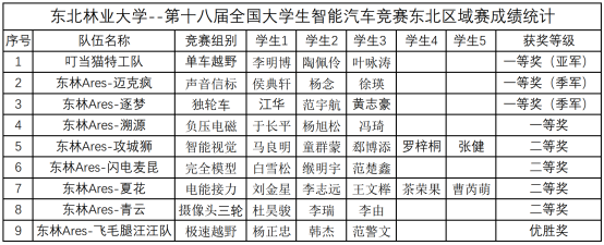 7月14—16日,第十八届全国大学生智能汽车竞赛东北区域赛在沈阳航空航天大学举行。我校智能车队参加了全部九个组别的比赛,最终获得东北赛区一等奖4项、二等奖4项,优秀奖1项,其中,一等奖获奖项数量在所有参赛高校中位列第二。