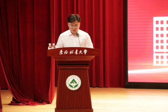 朱良宽院长讲话,他首先对于全体同学的到来表示热烈欢迎。朱院长表示,进入大学是每个人在人生路上的一次里程碑,本科生结束了12年的基础教育,研究生结束了四年的高等教育,在新的人生旅途中,同学们将承担起更多的责任。朱院长作为学院的引领者,殷切期待未来同学们能够做到:要有一身的本领,要有健全的人格,要有强健的体魄,要学会处理人际关系,要有吃苦的精神。最后朱院长再次为进入东林的所有新同学表示热烈的祝贺。