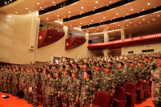 在短暂休会过后,万象城awcsport官网2023年本科生军训动员大会正式开始。