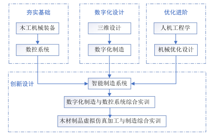 本次培训活动共计80个学时,采用线上线下混合模式,围绕“中国制造2025”国家战略规划,以“智造”创新设计师资人才培养为核心,秉持“新一代信息技术与先进制造技术深度融合”的理念,遵循基础知识、高阶知识前后贯通、延续递进的原则,面向“木工智能制造装备数字化设计”过程中的复杂工程问题,融合木工装备工艺技术、机械装备设计、数字化三维建模、虚拟仿真等多学科专业知识,构建木工智能制造装备数字化创新设计培养过程,包括夯实基础、数字化设计、优化进阶和创新设计四大模块。