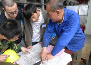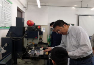 学生在专业实验室进行工程实训 学生在教师指导下进行工程实训