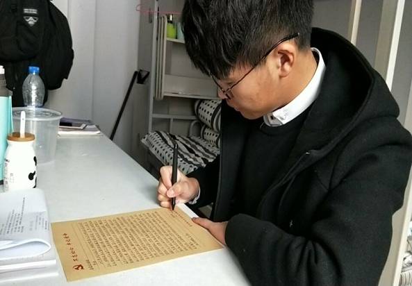 以学习十九大精神为契机,号召支部成员铺开信笺,把对十九大精神学习的感悟、心得和自己的成长、收获寄给远方的亲人,将十九大精神传递至每个家庭。刚刚被确定为入党积极分子的2017级关巡同学说道:“现今的生活节奏越来越快,微信、qq等‘快餐式’交流方式固然好,但能静下心来的书写也是一种回归,可以掠去浮躁,沉淀快乐。”此次活动把十九大精神的理论深度与家庭的情感温度紧密结合起来,引领身边人切实把思想和行动统一起来,争做十九大精神的宣传者、践行者。