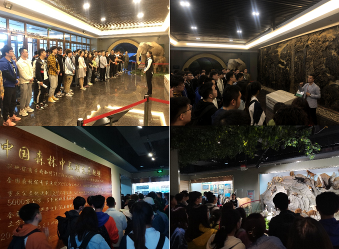 在党员讲解员张晶虹同志的介绍和引领下,大家从令人震撼的主题墙前,走进栩栩如生的“森林与自然界”、“森林与人类”。当森林演化历程、中国森林的分布、森林生态系统的构成、森林动物、蝴蝶谷、高山流水、森林文化起源、现代林业、动植物微生物因子等展陈和馆藏,全景呈现在眼前时,还是让许多同学惊呼“原来森林之美、森林之好就在我们身边。”通过近距离的体验和感悟,大家对博物馆“森林文化凝聚中华上品自然情、生态文明彰显中国强盛美丽梦”的立馆之本理解得更加深刻,也更加坚定了立足东林,服务社会,珍惜自然,保护环境的信心和决心。