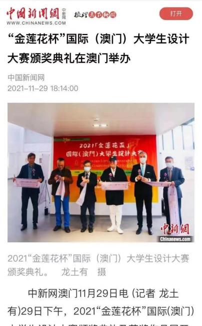 「金莲花杯」国际(澳门)大学生设计大赛自2014年起,在澳门特区政府相关主管部门的大力支持下每年举办一次,自2019年起改为每两年举办一次,至今已经成功举办五届,得到业内各界的高度支持与认可。此次大学生设计大赛,共收到来自中国内地及港澳台、新加坡、印度尼西亚、韩国、意大利、澳大利亚等国家和地区各大院校的参赛作品1000多份,学生分布院校近200所。赛事评委分别来自中国澳门、中国香港、中国内地、中国台湾及新加坡等国家(地区),包含业界贤达、高校教授讲师、专业设计师等。赛事受到中国新闻网、人民资讯、新浪新闻中心、华夏经纬网、深圳新闻网、珠澳观察、大湾区观察等多家主流媒体报导。