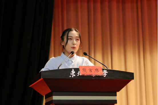新生代表强晨曦代表新生发言,他回顾了高中三年的挑灯夜读的辛苦,又表达了对即将到来的多彩大学生活的期待,展现了作为新机电人的意志与气魄。