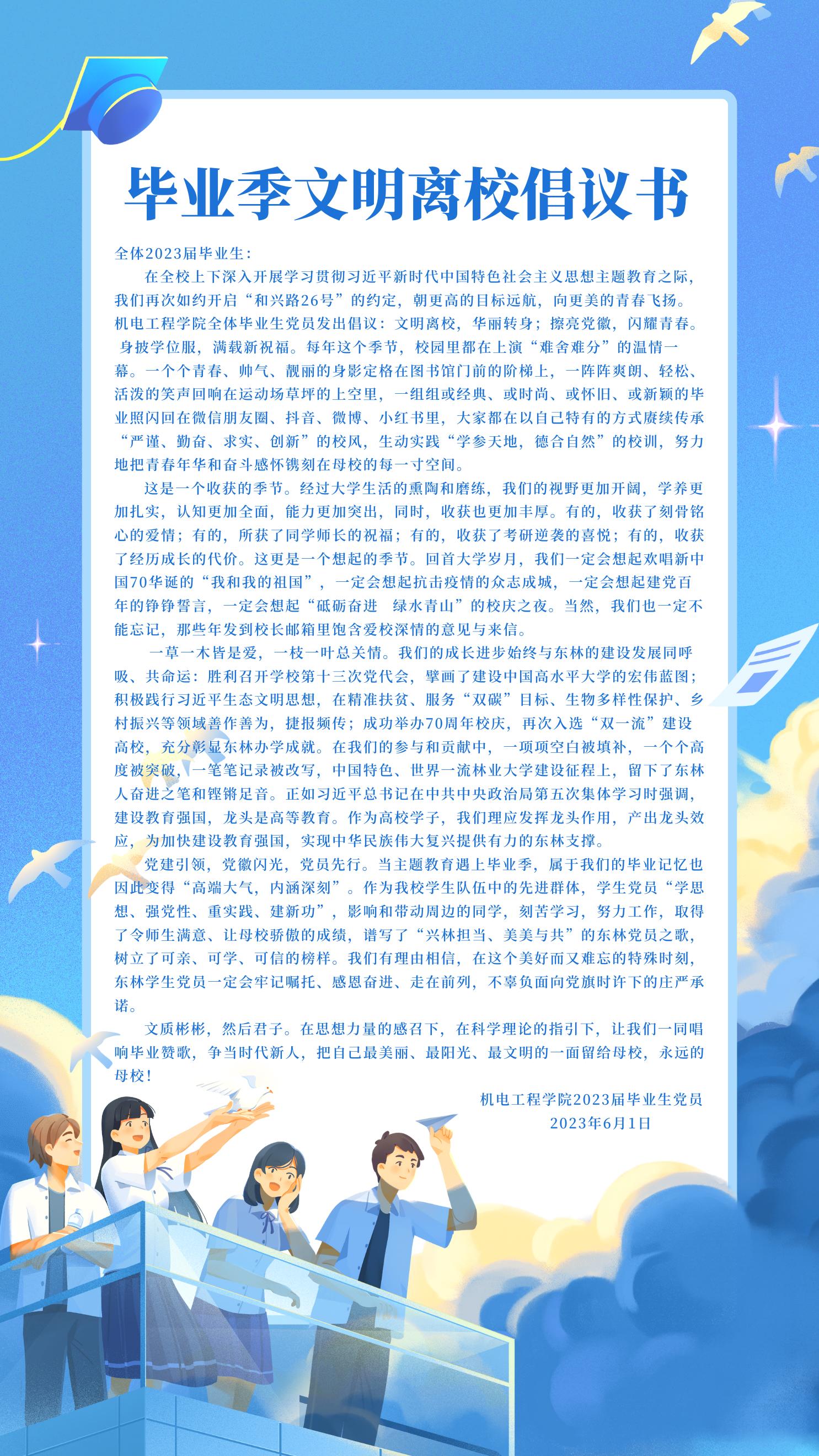 在全校上下深入开展学习贯彻习近平新时代中国特色社会主义思想主题教育之际,我们再次如约开启“和兴路26号”的约定,朝更高的目标远航,向更美的青春飞扬。万象城awcsport官网全体毕业生党员发出倡议:文明离校,华丽转身;擦亮党徽,闪耀青春。