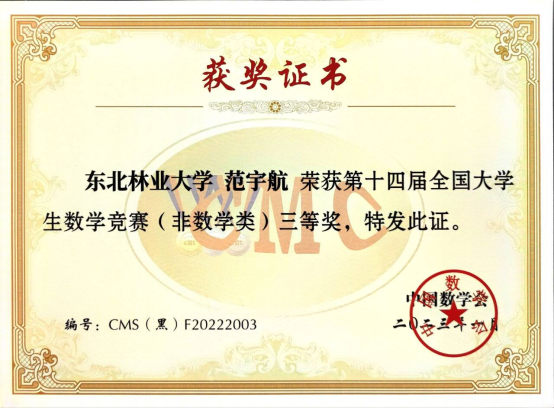 除此之外,范宇航致力于全面发展。他积极投身志愿服务活动,志愿服务时长180余小时。身为党员,他也积极参加党日活动,曾代表机电创新党支部前往齐齐哈尔泰来县为中学生们进行科普工作。曾在疫情防控期间,他在家乡进行一个月的志愿防控任务,协助相关人员进行核酸检测、出入登记等工作。他还注重体育运动,曾在2022年代表机电学院参加学校阳光体育运动会的多人循环跳绳比赛项目,获得第一名并打破校记录。同时,他还擅长书法,作为自己的小爱好,每年为自己的家庭写对联。